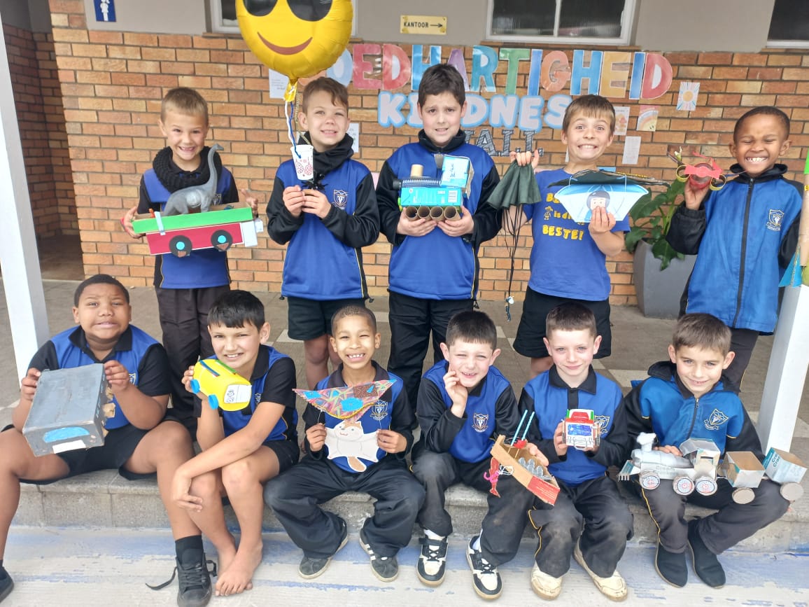 Gr 2 VERVOERMIDDELS 2025 Vandag het die Gr 2’s vervoermiddels gemaak van afval materiaal.Well gedaan julle!